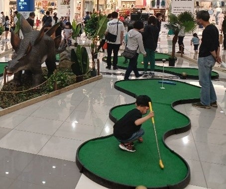 恐竜と一緒にパターゴルフにチャレンジ!ちょっとかわったゴルフでハラハラどきどき体験をお楽しみください。