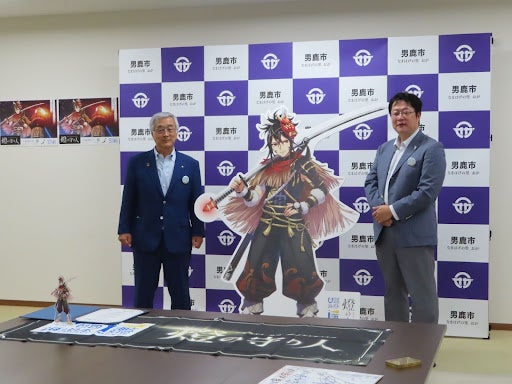 燈の守り人キャラクターを活用して、地域の灯台を歴史・文化資産として活用する機運をつくるため、キャラクター化の対象となる「入道埼灯台」が立地している秋田県男鹿市の菅原広二市長を、「燈の守り人」製作委員会プロデューサーの柴田英知が2022年7月15日(金)に表敬訪問し、キャラクターの贈呈式を実施しました。