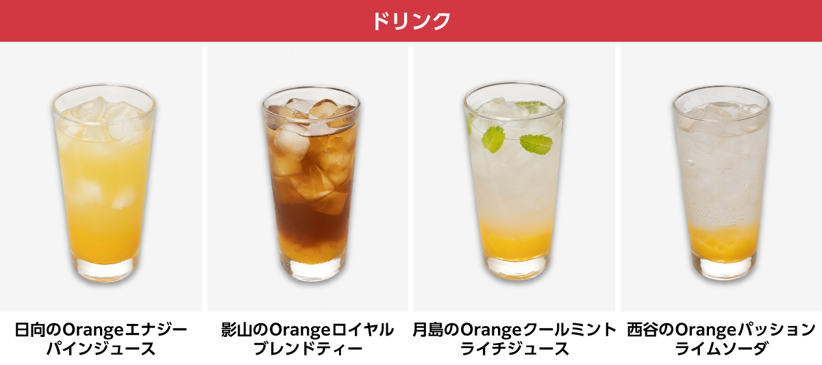 月島のクールなキャラクターをイメージしたミント入りのライチジュースに、烏野高校セカンドユニフォームカラーをイメージしたオレンジゼリーを組み合わせました。