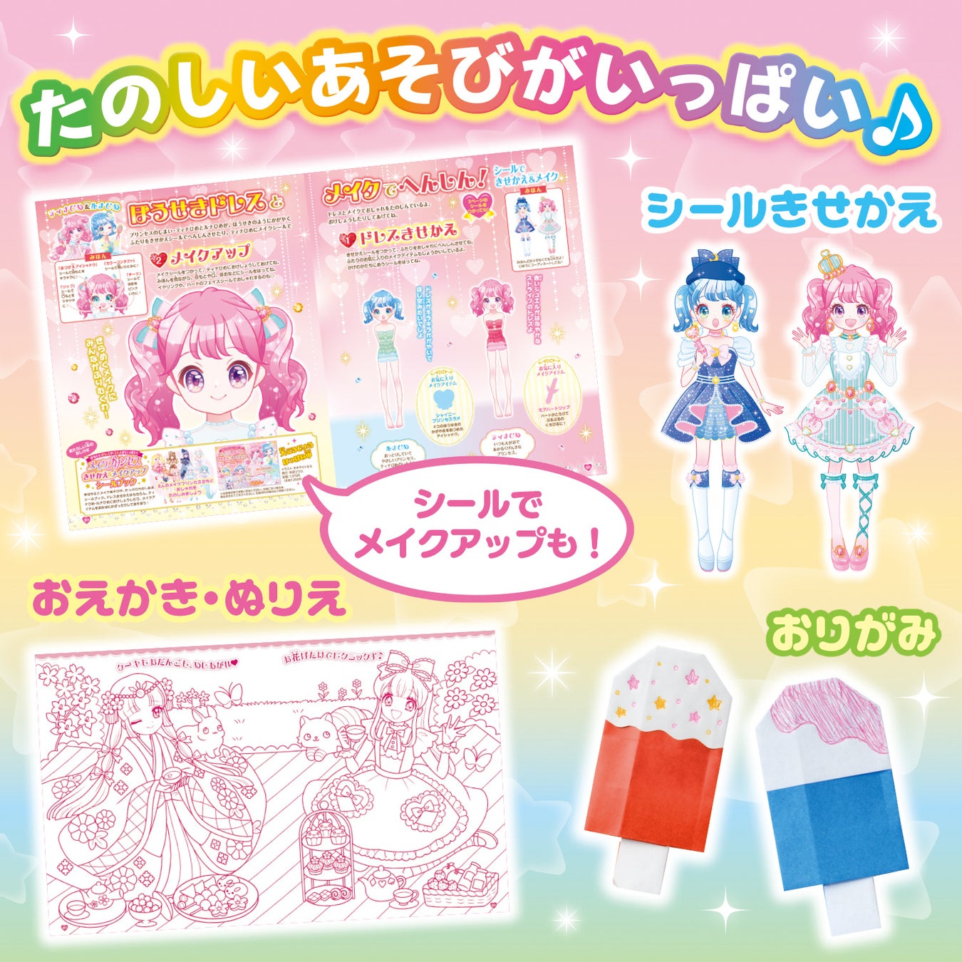 ■シールきせかえ・おえかき・ぬりえ・おりがみ…。本誌も楽しいあそびが盛りだくさん!!