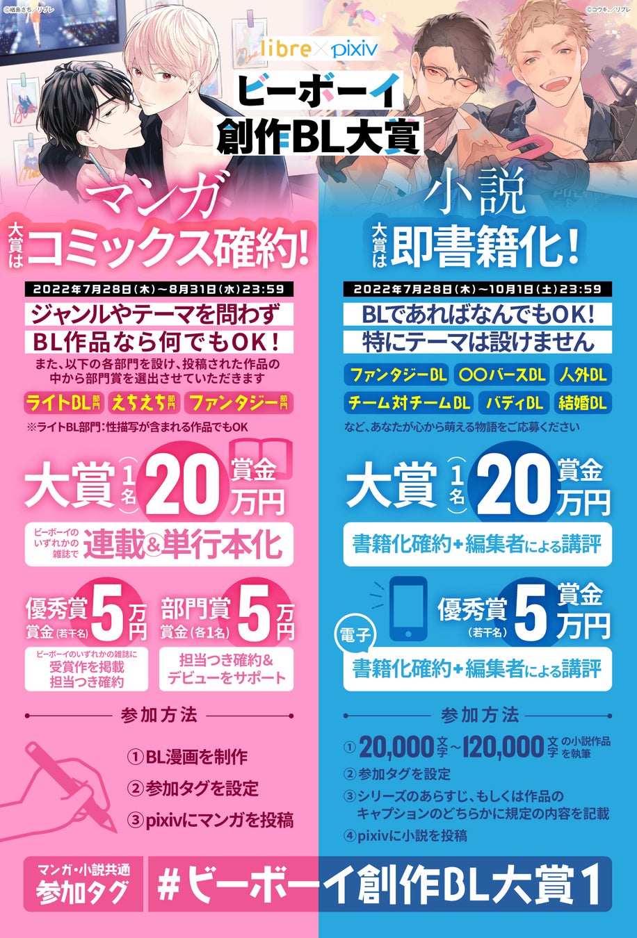 株式会社リブレ(本社:東京都新宿区、代表取締役社長:太田歳子)は、2022年7月28日より、大手投稿サイト「pixiv」とタッグを組んだ創作BLコンテスト「ビーボーイ創作BL大賞」第1回コンテストの応募を開始します。