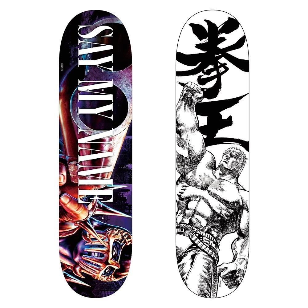 原作の武論尊先生も一番のお気に入りだという名台詞を「SAY MY NAME?!」を添えて、アイコニックなソードオフ・ショットガンを構えたジャギを全面プリント!高速ボードスライドを決めて「このおれの顔より醜く焼けただれろ!」タフに使って欲しい限定モデル!