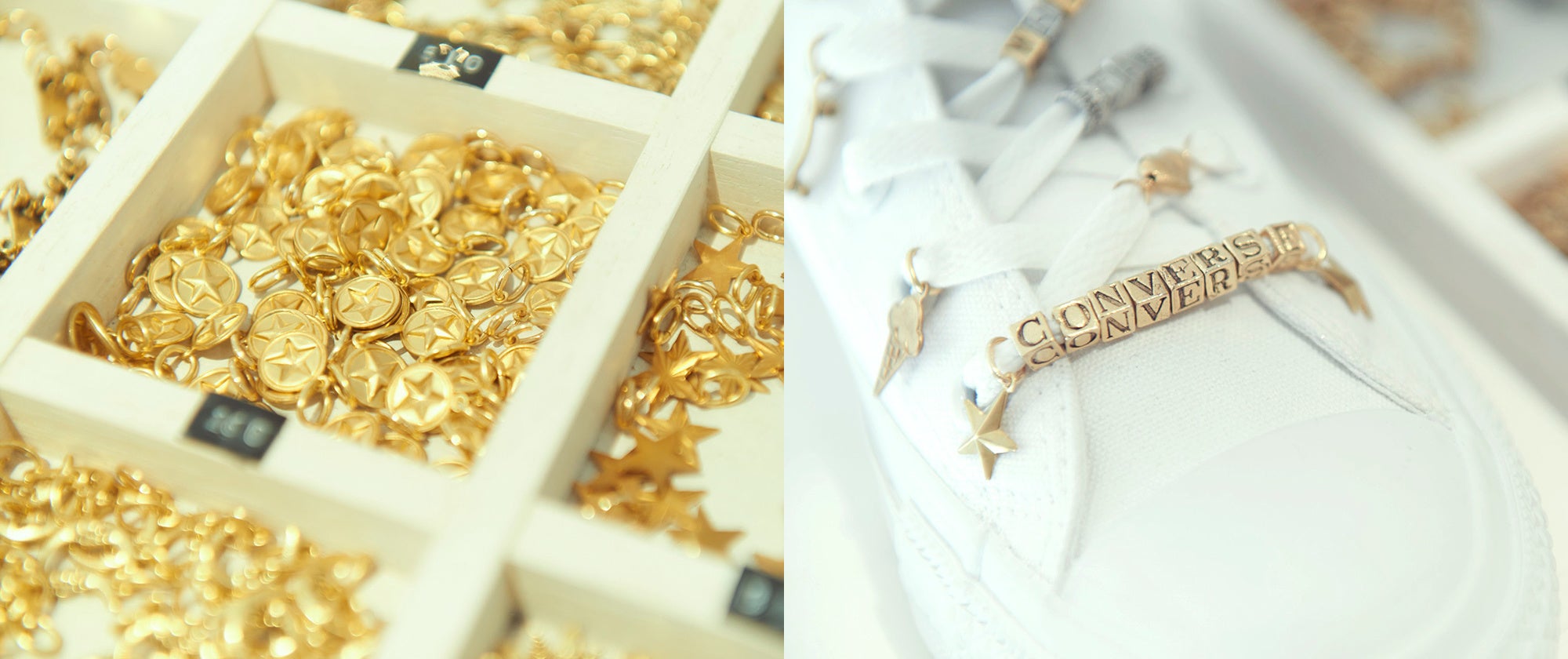 White atelier BY CONVERSE店舗内では、シューレースやチャームといったカスタマイズアイテムも販売しておりますので、あなた好みのアレンジをお楽しみいただけます。
