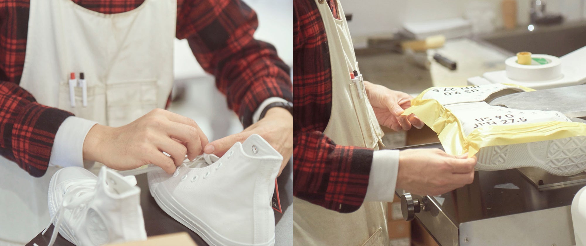 プリントは、カスタマイズ専用の機械を使い、一足一足丁寧に手作業で仕上げています。