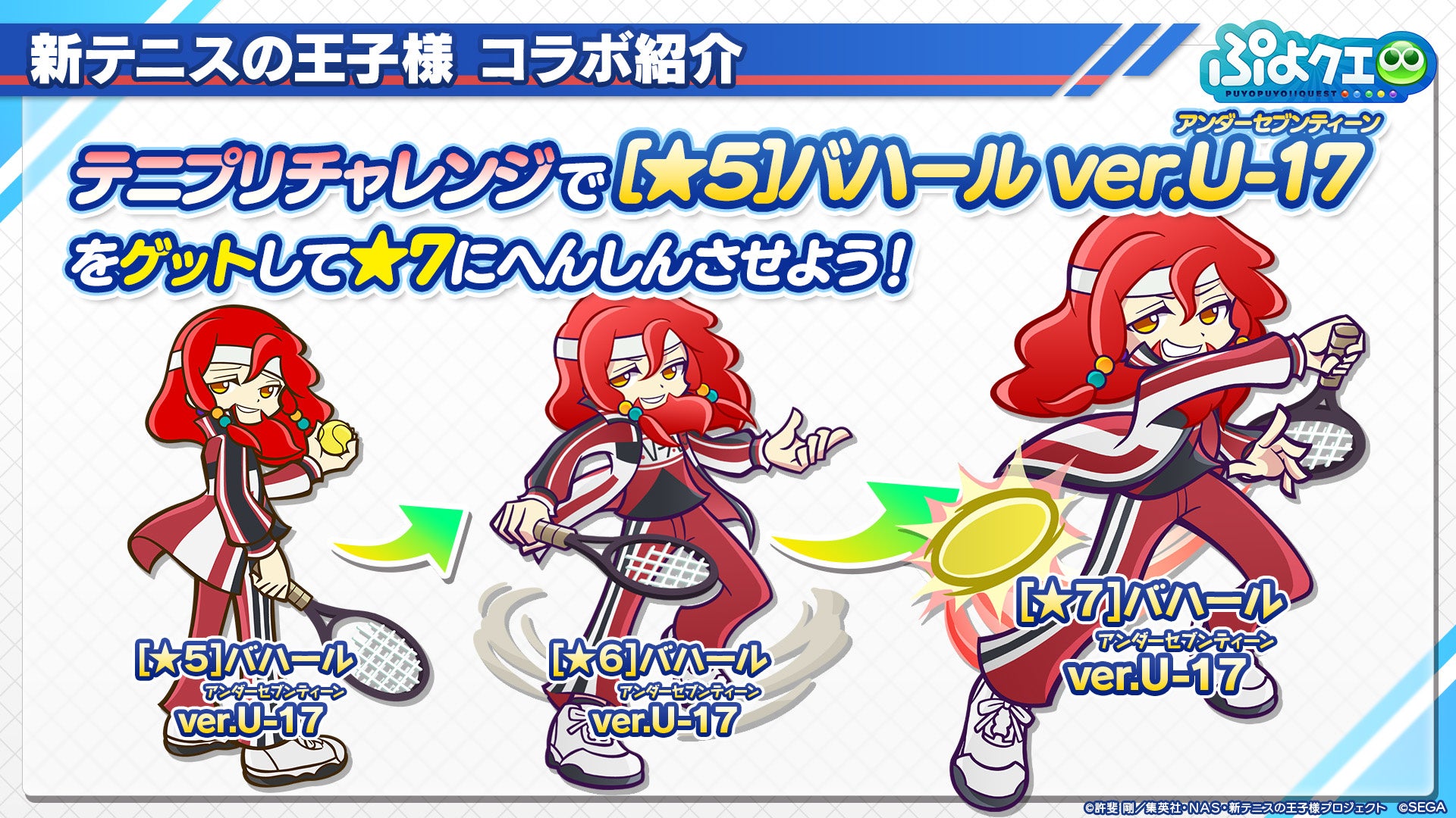 株式会社セガは、大好評配信中のパズルRPG『ぷよぷよ!!クエスト(以下、『ぷよクエ』)』にてTVアニメ『新テニスの王子様』とのコラボレーションイベントを2022年8月9日(火)から8月29日(月)まで開催することをお知らせします。