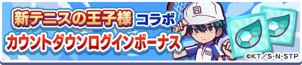 内容:「新テニスの王子様コラボ」開催を記念して、8月4日(木)より「カウントダウンログインボーナス」を実施します。毎日『ぷよクエ』にログインして、コラボイベント開始までのカウントダウンを楽しもう!