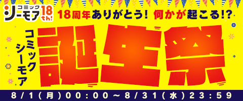 コミックシーモア18周年を記念し「18周年誕生祭特設ページ」にて多数のキャンペーンを紹介しています。期間中、随時更新をしますので是非ご期待下さい。