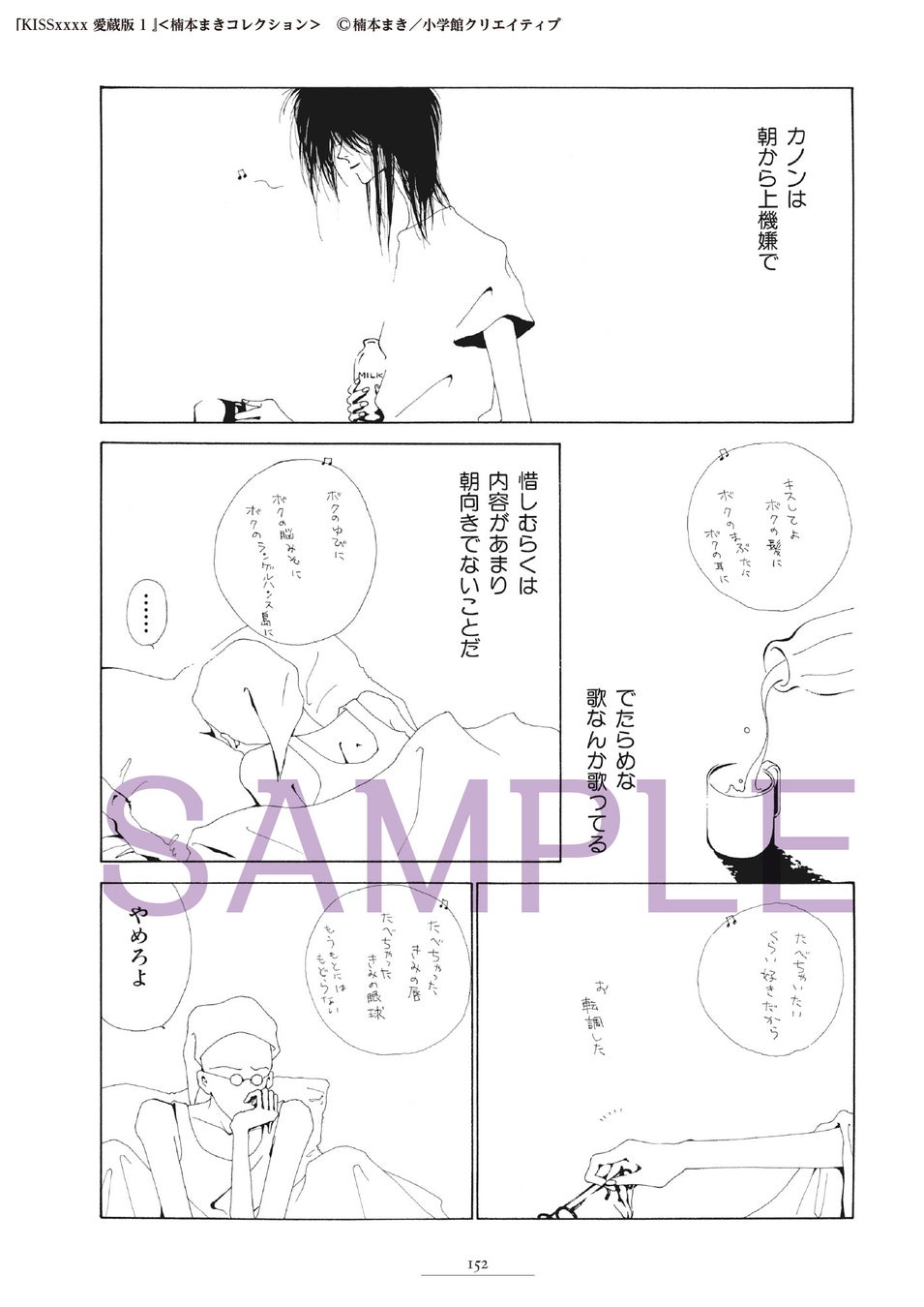 小学館クリエイティブ発行の楠本まき作品・愛蔵版シリーズ【楠本まきコレクション】、第2弾となる『KISSxxxx』では、これまでの単行本では収録されることのなかったイラストやカットに加えて、連載誌以外に掲載・発表されたスピンオフ作も網羅し、全3巻で刊行します。なお、購入特典としてオリジナルポストカードが各巻に1枚封入されています。