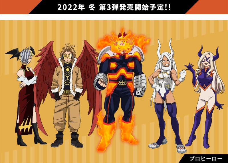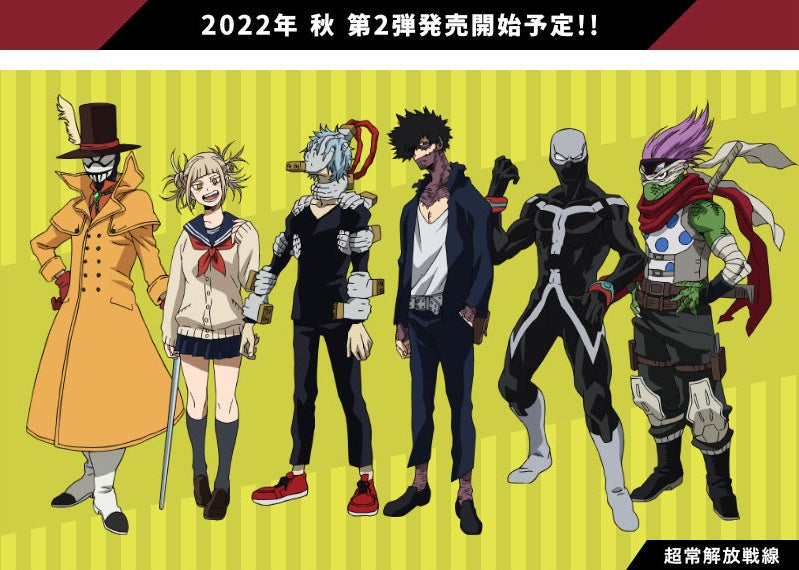 2022年秋には第二弾として、死柄木弔(しがらき とむら)、荼毘(だび)、トガヒミコなど25キャラクターが、さらに、2022年冬には第三弾として、プロヒーローのエンデヴァー、ホークスなど31キャラクター(予定)が登場します。