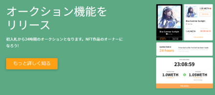 NFTクリエイター(絵師)が好きな価格・日時で販売できるオークション機能をリリース(初入札から24時間のオークション)。