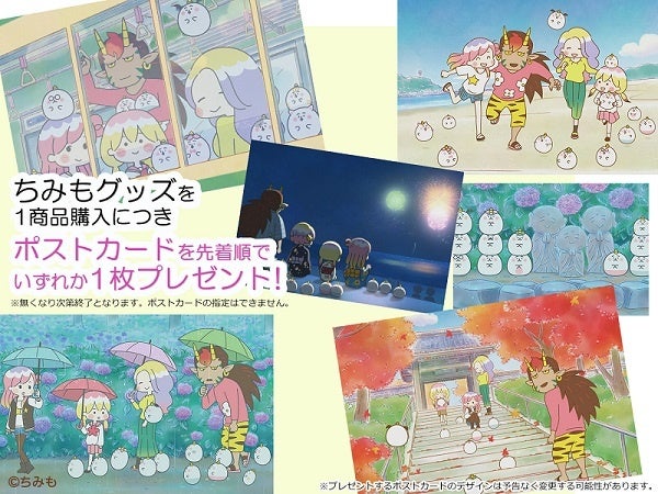 ECサイトカナコレの公式Twitterにて、江ノ電・鎌倉コラボ商品(12点)が当たるプレゼントキャンペーンを実施します。作品のファン、視聴者の皆様には、江ノ電に乗り、オリジナル御朱印帳を持って、鎌倉の「地獄」に縁ある寺院を散策頂きたいと思っております。そこで本キャンペーンでは、江ノ電車両内の「ちみも」告知ポスターや鎌倉で「地獄」に縁のある寺院(円応寺、長谷寺、極楽寺)の写真を投稿すると当選確率がアップします。