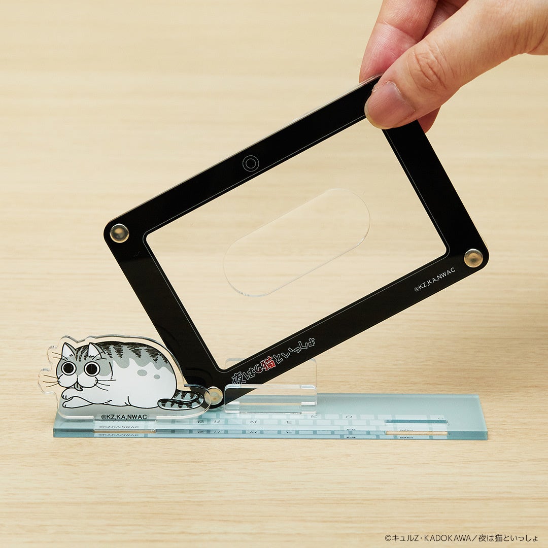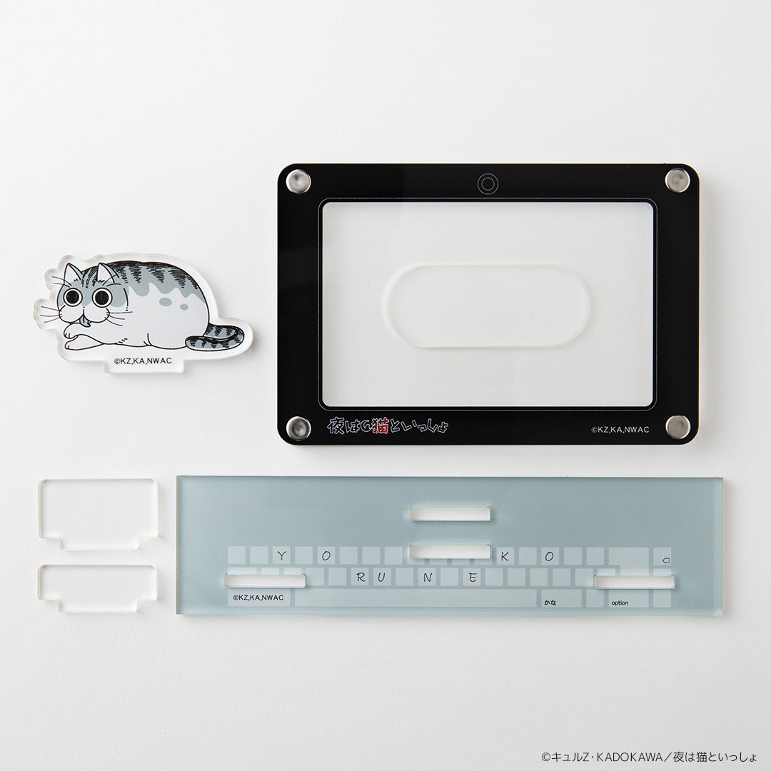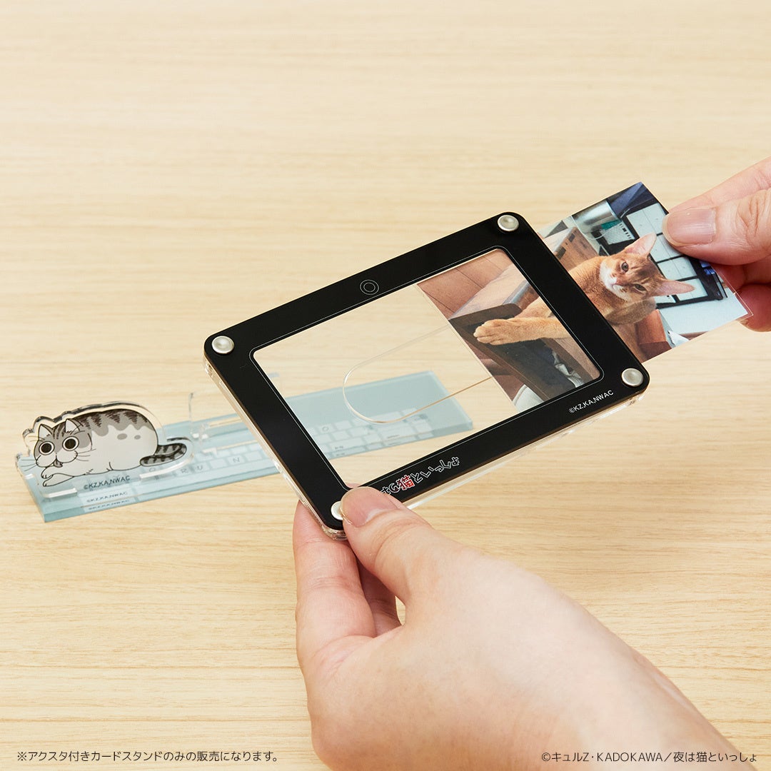 また、「Tカード(夜は猫といっしょ)」公式サイトや、全国のTSUTAYA・旭屋書店では、PCのまわりにまとわりつくリアルな猫感がかわいいカードスタンドや、キュルガのいろんな一面が見られるスライドカードケースなど、おうちや外出先でもキュルガに癒される、オリジナルグッズの予約受注も開始します。