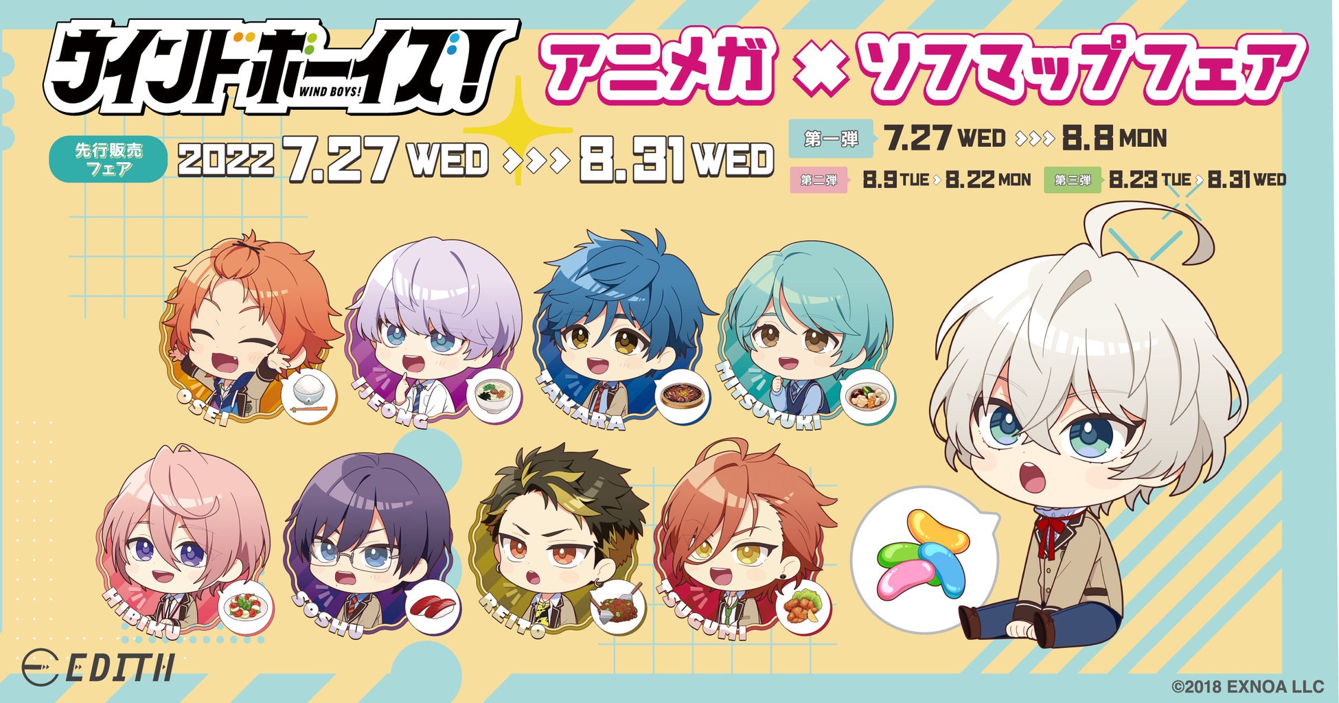 IPを活用したイベント事業・グッズ事業を手掛ける株式会社イーディス(本社:東京都豊島区、代表取締役:森俊平、以下イーディス)は、『ウインドボーイズ!』の描き起こしイラスト「ほしがりさん」を使用した商品を第一弾から第三弾に分けて、アニメガ×ソフマップにて先行販売致します。
