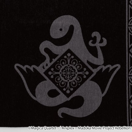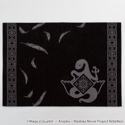 悪魔ほむらの背中の翼から舞い散る羽と、「悪魔ほむらの紋章」を総柄にアレンジしております。