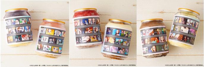 今回Cake.jpとコラボしたケーキ缶は、TVアニメ1~3期の作中シーンが描かれたオリジナルデザインのケーキ缶です。ケーキ缶の種類は、主人公の高木さんがいつも飲んでいる「ぶどうサイダー」をイメージした爽やかなぶどう風味のラムネムースとクリーミーなバニラムースが相性ぴったりなさっぱりしたケーキ缶をはじめとした全6種類の展開です。2種1セットにして販売します。