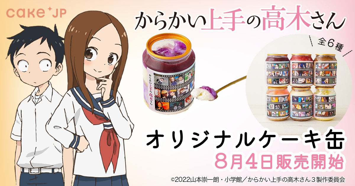 ケーキ・スイーツ専門通販サイト「Cake.jp(ケーキジェーピー)」を運営する株式会社Cake.jp(本社:東京都新宿区、代表取締役:高橋 優貴)は、TVアニメ『からかい上手の高木さん』とコラボし、作中のシーンが描かれたオリジナルデザインのケーキ缶を8月4日(木)より販売開始します。