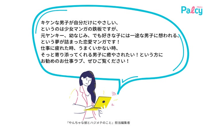 『やんちゃな彼とハジメテのこと』がは少女・女性マンガアプリPalcyにて連載され、隔週金曜日に更新予定。