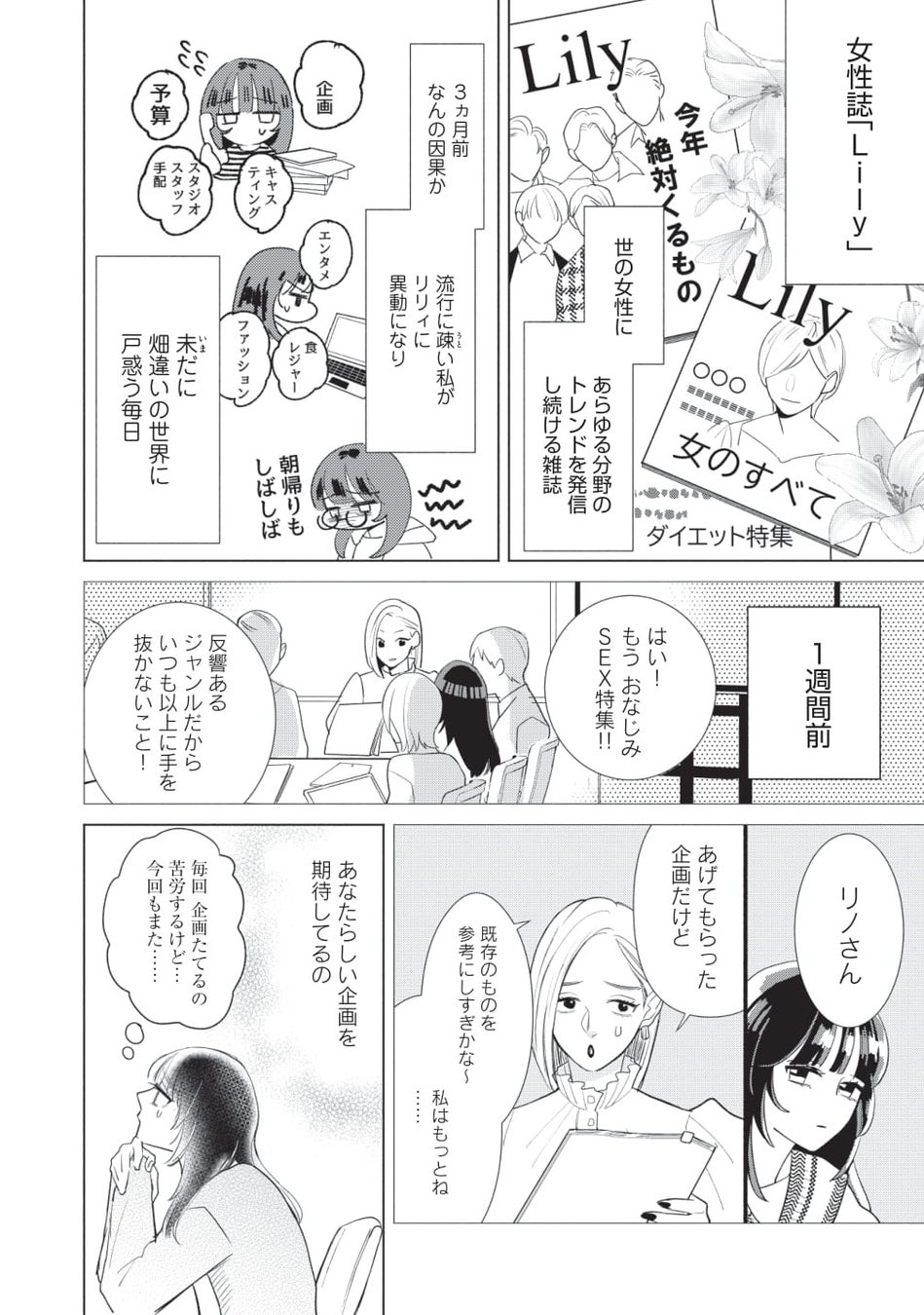 ファッション誌「リリィ」の若手編集者・リノは、帰り道で見知らぬ男に絡まれていたところを、