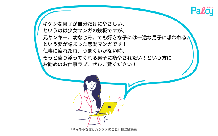 『やんちゃな彼とハジメテのこと』がは少女・女性マンガアプリPalcyにて連載され、隔週金曜日に更新予定。