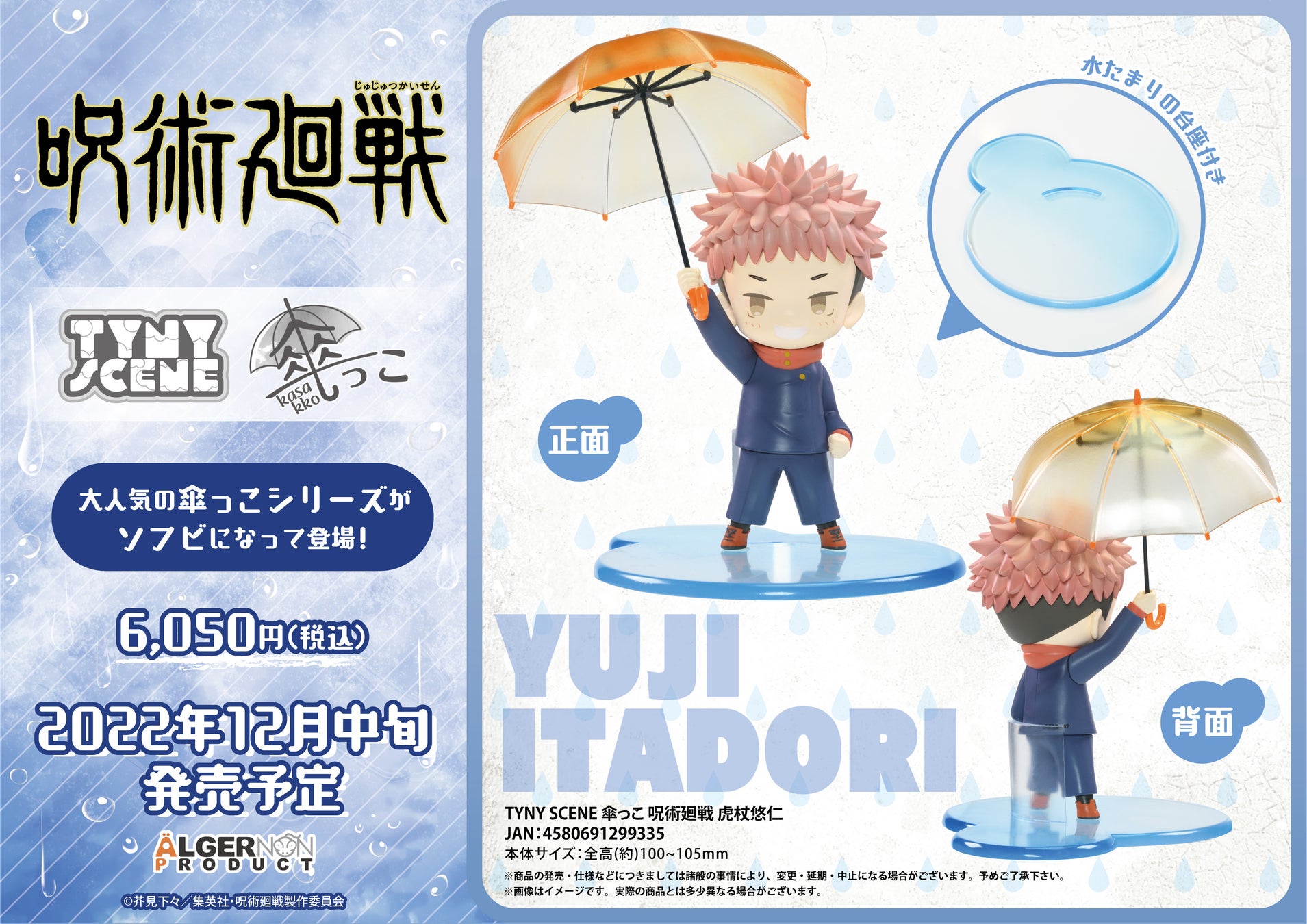 株式会社アルジャーノンプロダクト(本社:東京都台東区、代表:高山 聡士)は、2022年8月8日(月)より、「TYNY SCENE 傘っこ 呪術廻戦」を全国のアニメショップおよびECサイト等にて予約販売を開始いたします。
