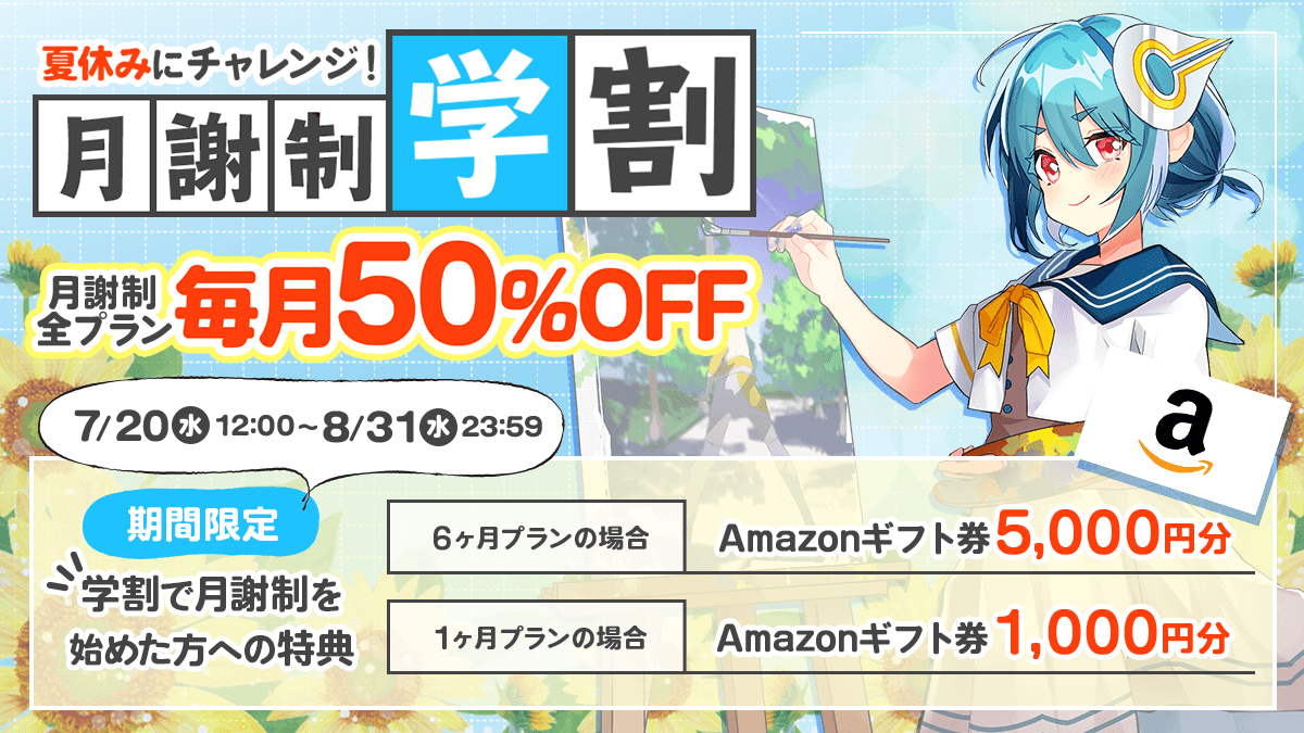 株式会社パルミー(所在地:東京都港区、代表取締役:伊藤貴広、以下パルミー)は、本日2022年8月8日(月) 12時00分から2022年8月22日(月) 23時59分までの期間、受講料が初月30%OFFになる『夏休み割』を開催いたします。また、学生限定でAmazonギフト券を最大5,000円分をプレゼントする『学生応援キャンペーン』も開催中!夏休みはパルミーでイラストを学びませんか?