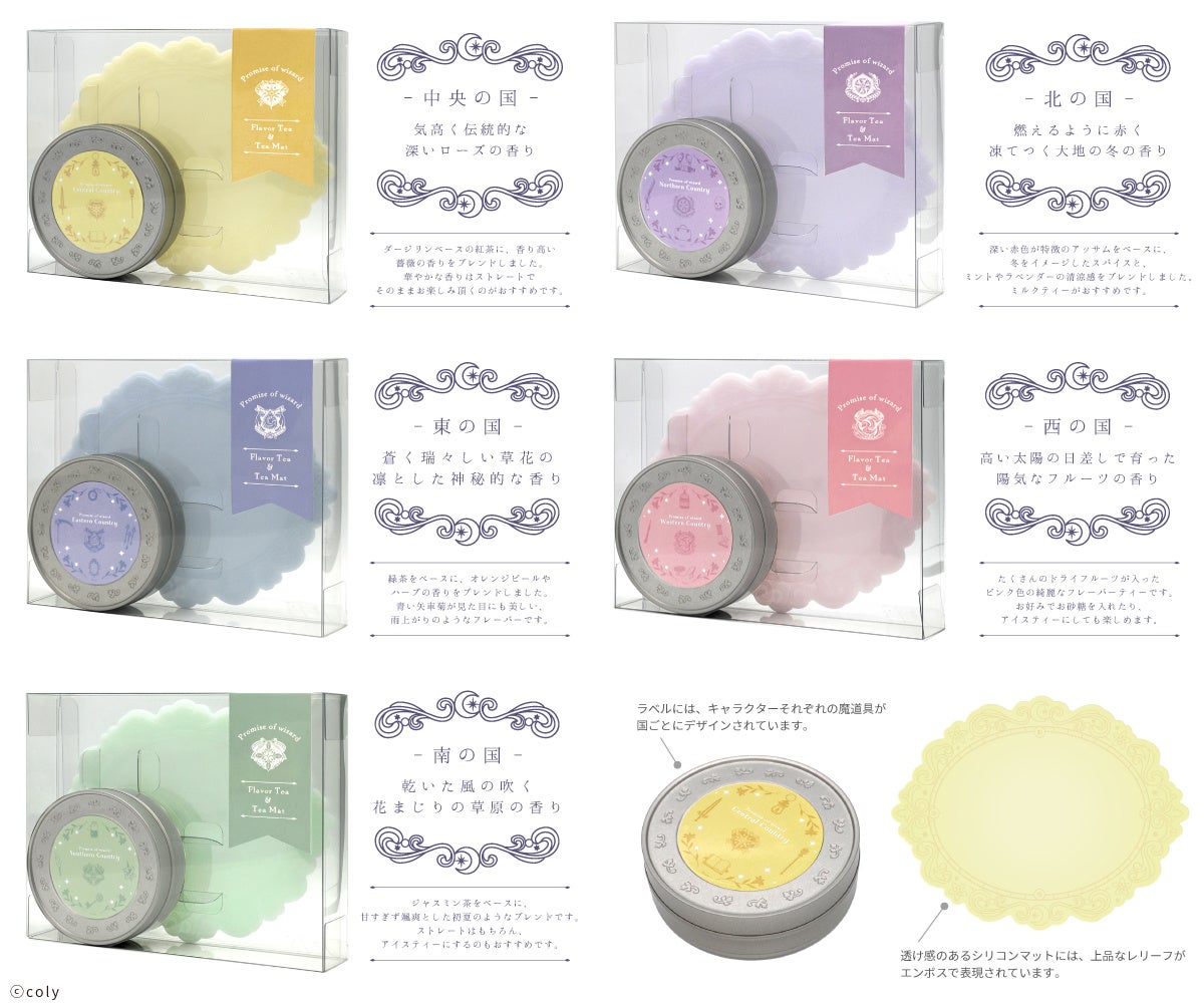作品に登場する各国をイメージしたフレーバーティーとティーマットのセット。