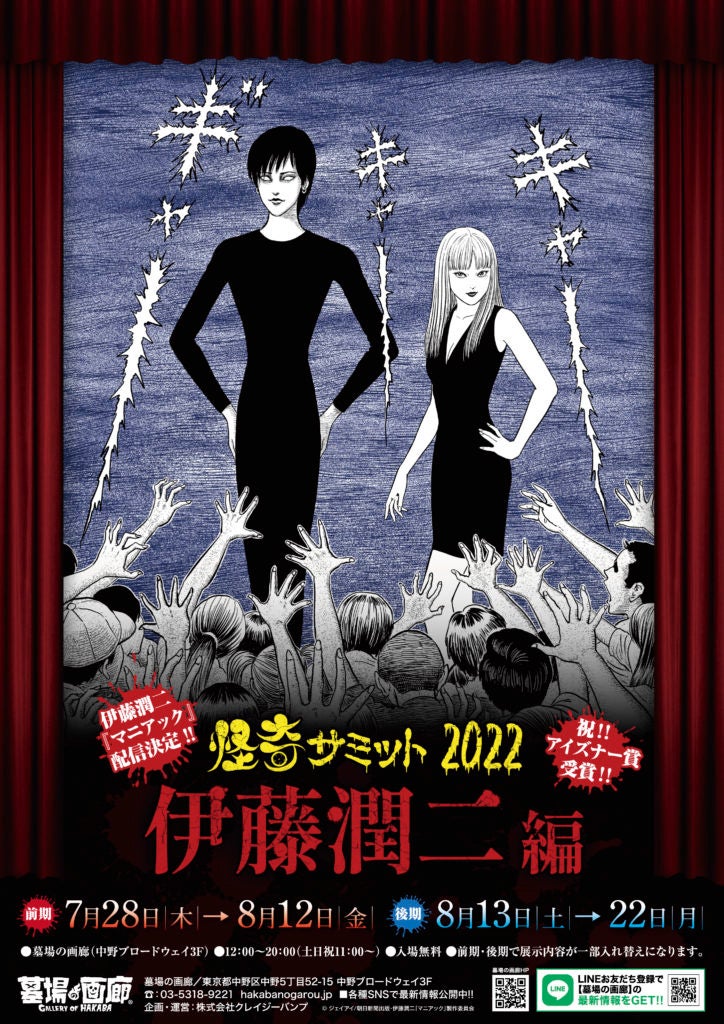 マンガ、アニメ、特撮などを始めとするサブカルチャーをテーマとした企画展を開催・運営している株式会社クレイジーバンプは7月28日(木)〜8月22日(月)の期間で開催中の【怪奇サミット2022 伊藤潤二編】(https://hakabanogarou.jp/archives/31287)の会期後半の情報を公開致します。
