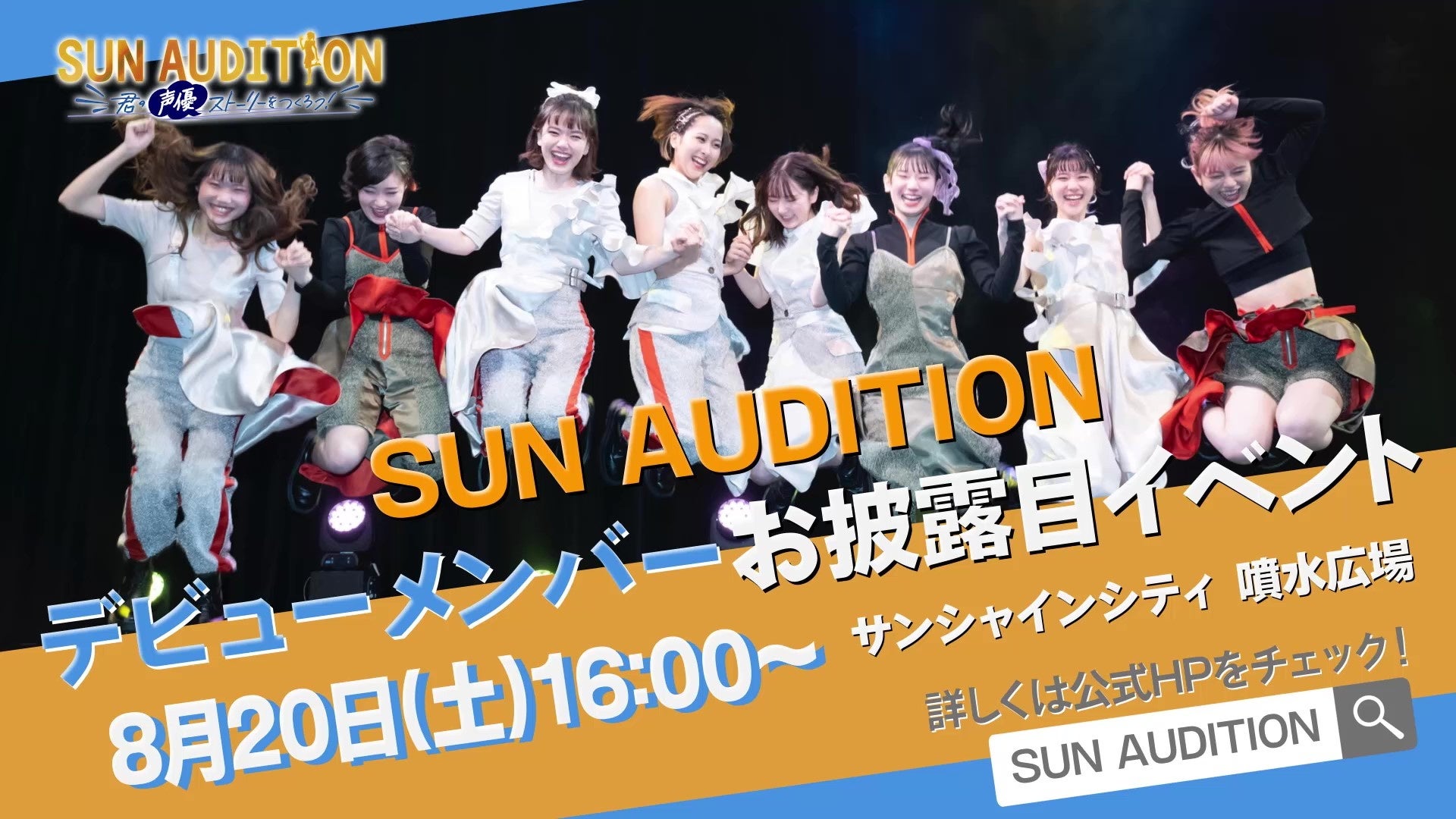 8月20 日(土)16:00からサンシャインシティ 噴水広場にて、「SUN AUDITION」デビューメンバーのお披露目イベントを開催いたします。