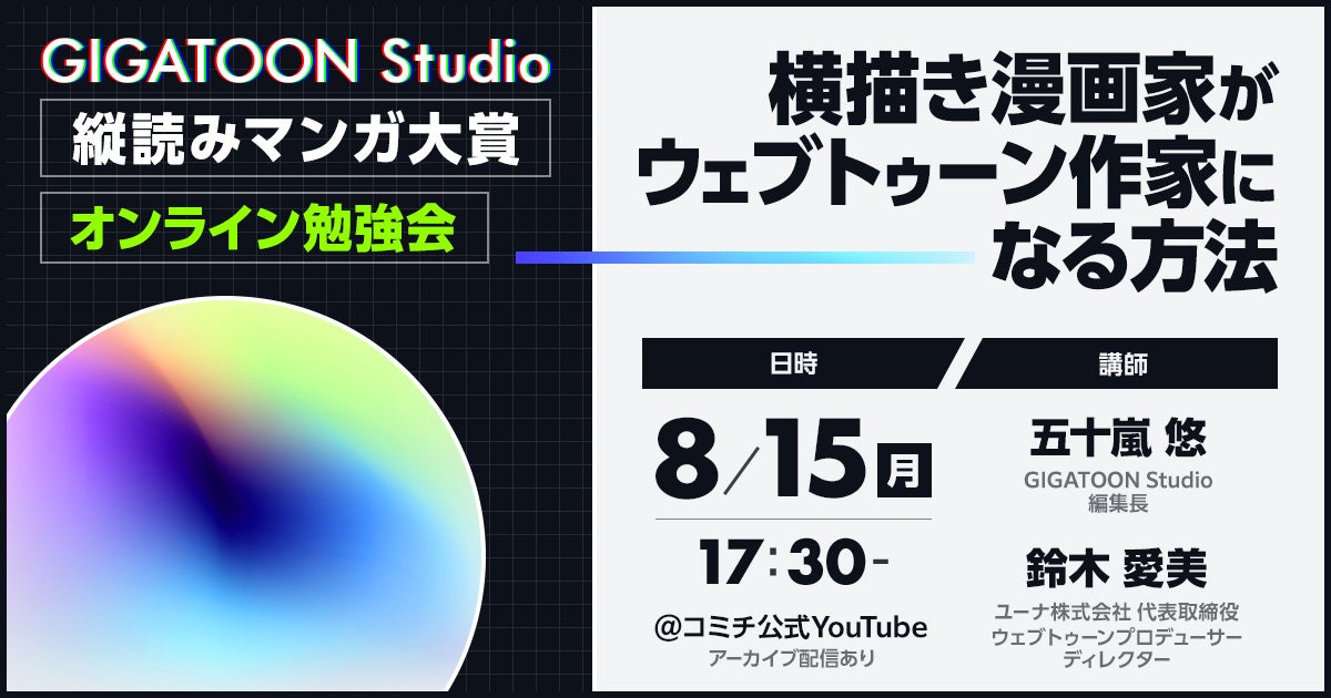 また、それに伴い漫画投稿者向けの勉強会を8月15日より生配信・アーカイブ配信します。月間投稿数2000を超えるコミチの漫画賞は、これより多面展開し、様々な出版社やウェブトゥーンスタジオとコラボしてまいります。