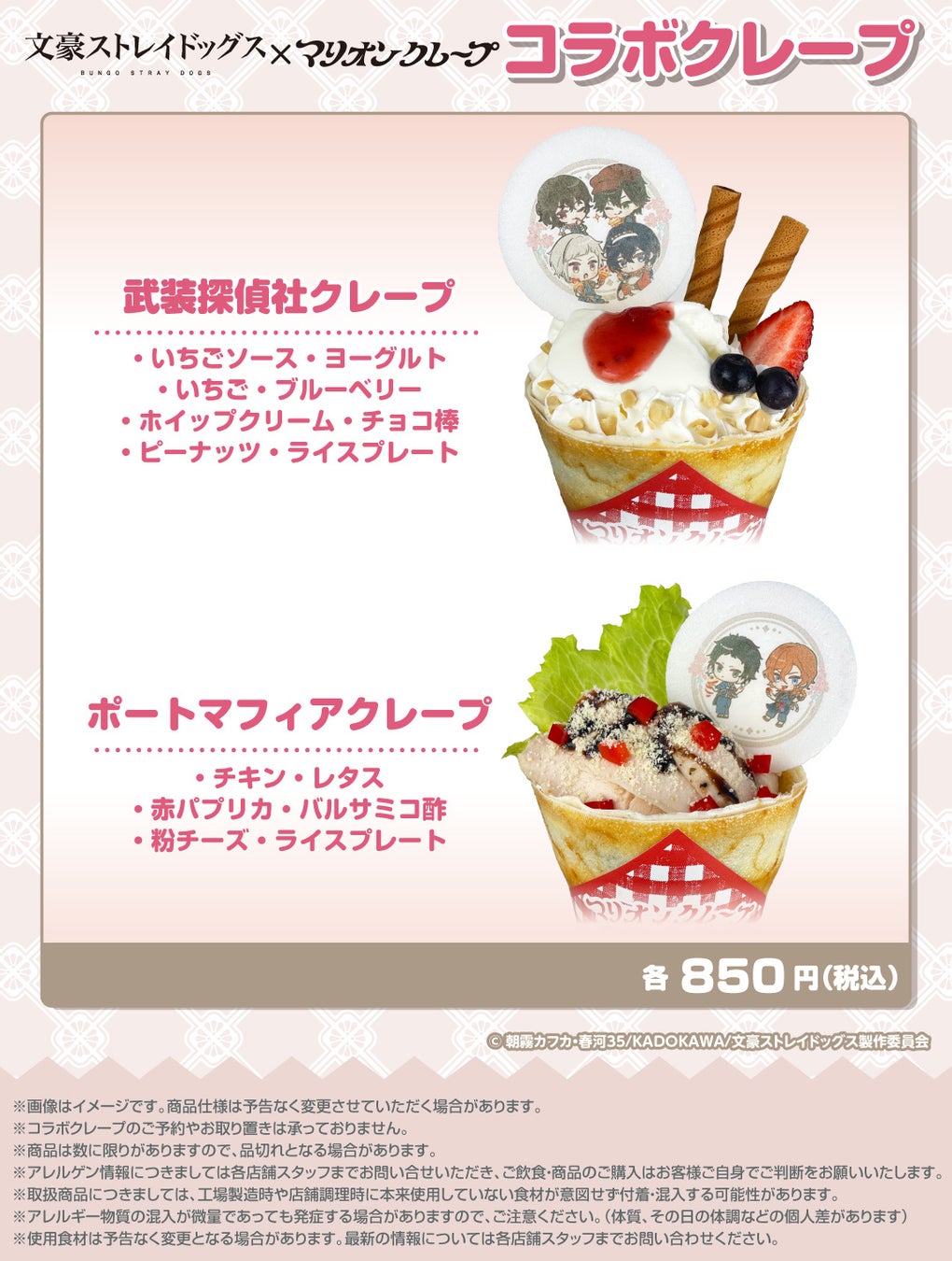 - TVアニメ『文豪ストレイドッグス』と『マリオンクレープ』のコラボ決定!