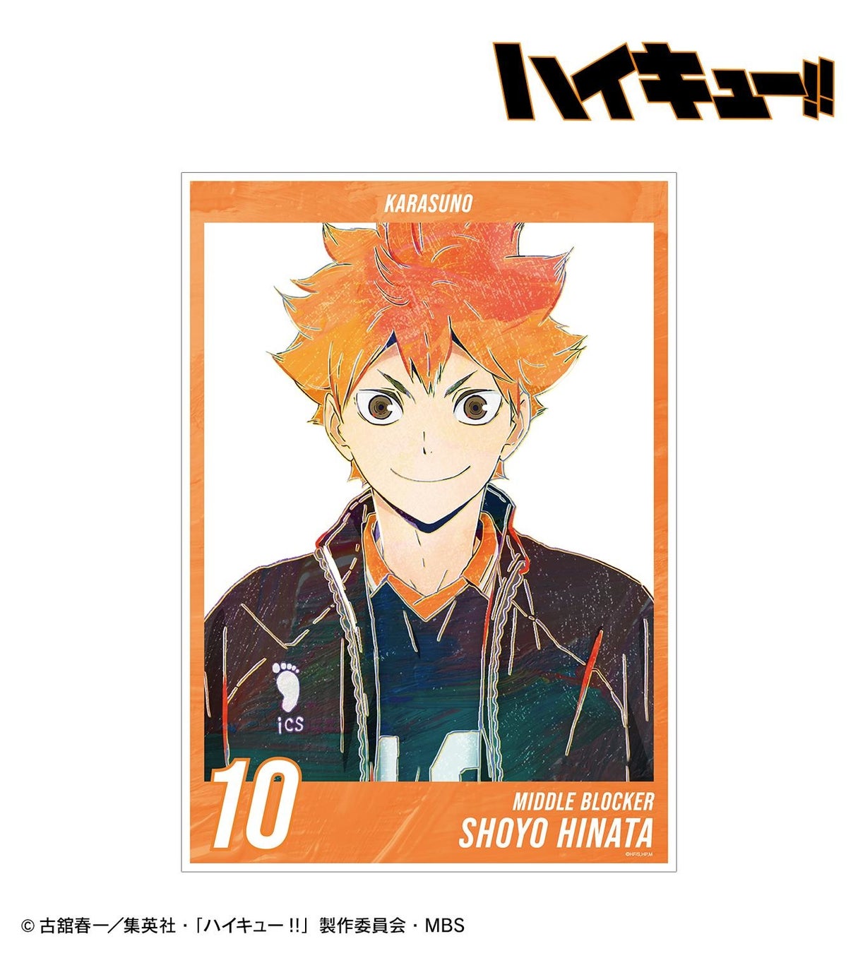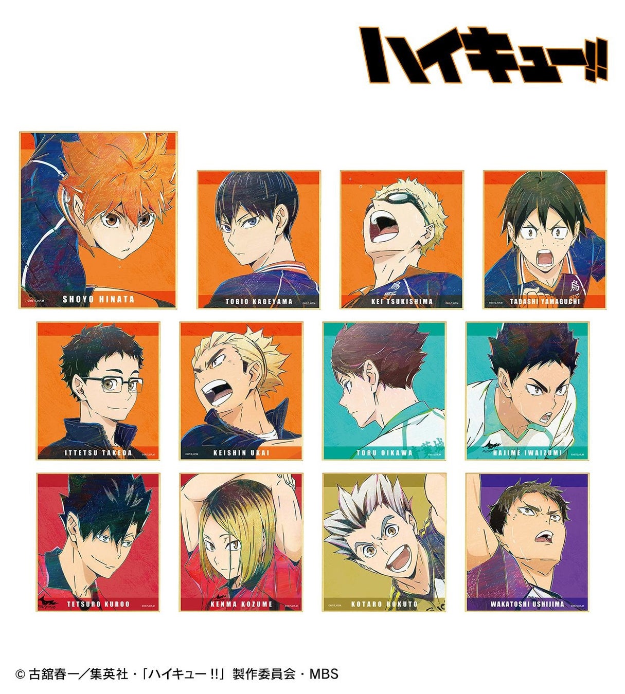 日向翔陽、影山飛雄、月島蛍、山口忠、及川徹、岩泉一、黒尾鉄朗、孤爪研磨、木兎光太郎、赤葦京治、牛島若利、天童覚を新たなタッチで魅力的に表現し、スタンド付きの色紙に仕上げました。
