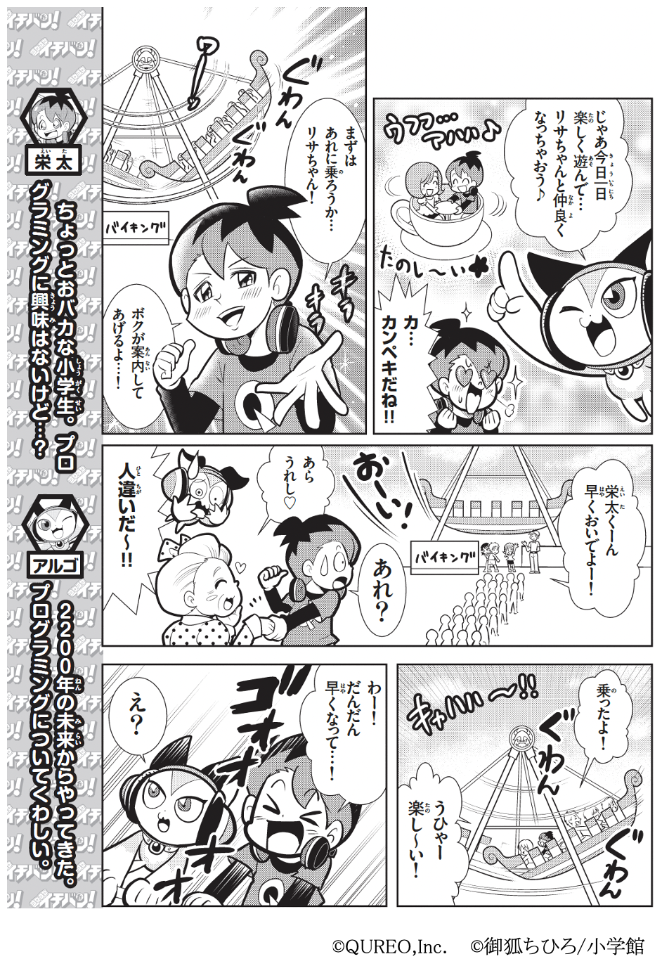 株式会社CA Tech Kidsと株式会社スプリックスとの合弁会社で、プログラミング教材の開発・運営・販売事業を行う株式会社キュレオ(本社:東京都渋谷区、代表取締役社長:上野朝大)は、運営する子ども向けプログラミング教室「QUREO(キュレオ)プログラミング教室」https://qureo.jp/ が全面監修するプログラミング学習マンガ『キュレオ プログラミングチャレンジャーズ!(通称:キュレプロ)』の最新回となる第5話の内容をお知らせいたします。第5話が掲載される、小学館「コロコロイチバン!」8月19日発売号の本誌ページの一部も公開いたします。