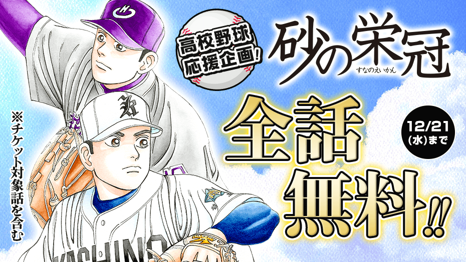 『砂の栄冠』を全話無料、『ダイヤのA』、『イレギュラーズ』は無料話増量でお届けします!