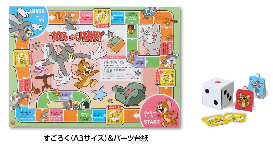 お正月時間がさらに楽しくなる付属品として、トムとジェリーの追いかけっこが楽しめるオリジナル「すごろく」をご用意!その他、祝箸やぽち袋も付属。お気に入りのキャラクターの世界を楽しんでいただき、心弾むお正月を迎えていただけること間違いなし!