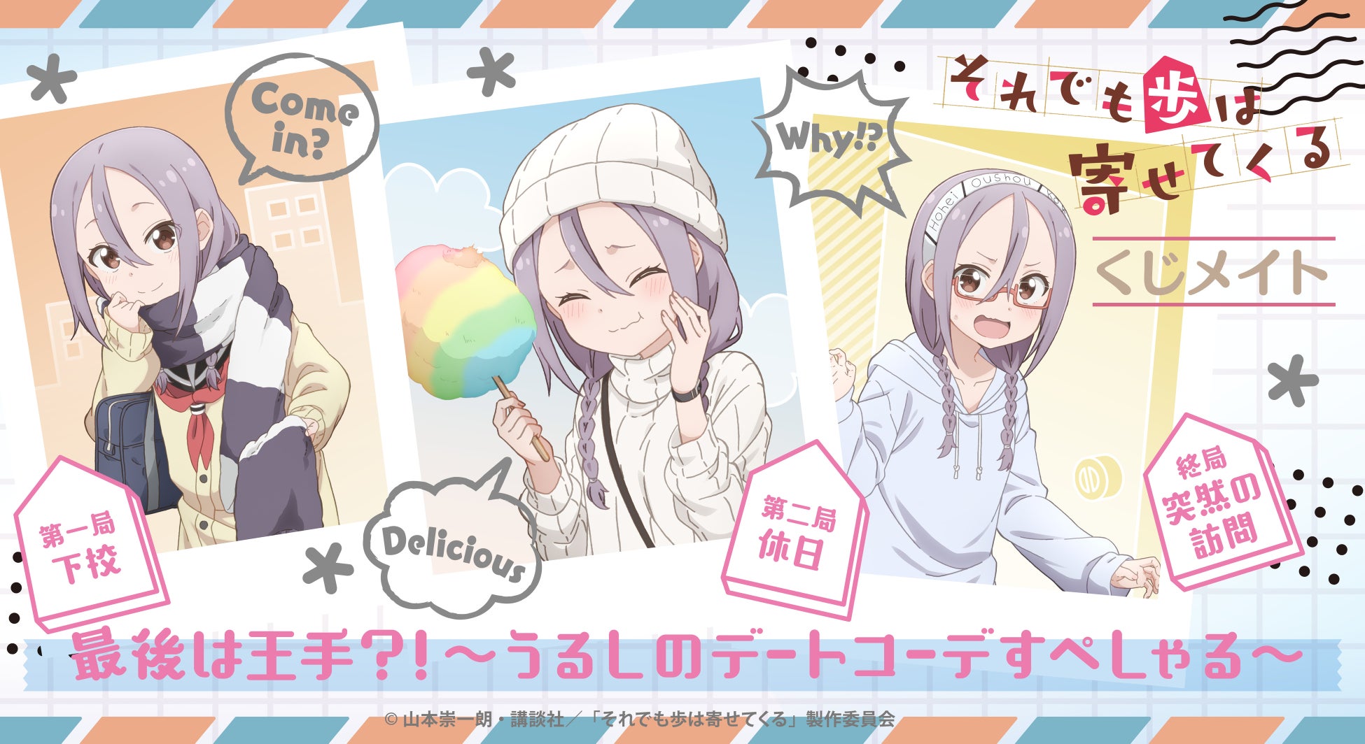 株式会社アルジャーノンプロダクト(本社:東京都台東区、代表:高山 聡士)は現在放送中のTVアニメ「それでも歩は寄せてくる」のオンラインくじ『くじメイト それでも歩は寄せてくる 最後は王手?!~うるしのデートコーデすぺしゃる~』を8月24日より開催致します。