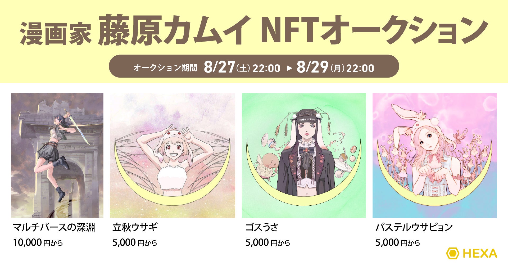 漫画家「藤原カムイ」によるNFTオークションが8/27(土)22時からNFTマーケットのHEXA(ヘキサ)で開催されます。
