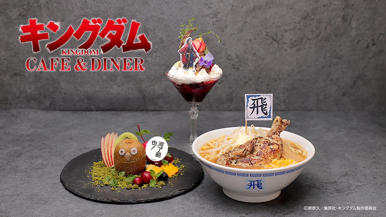 株式会社パルコは、「週刊ヤングジャンプ」(集英社)にて、大人気連載中の原 泰久による漫画『キングダム』の TVアニメとのコラボレーションカフェ「キングダムCAFE&DINER」を、渋谷パルコ6F TOKYO PARADE goods&cafeにて期間限定オープンいたします。今年4月よりTVアニメ第4シリーズ放送中の他、今夏に公開された実写映画第2弾「キングダム2」も大ヒット上映中となっており、今話題の作品となっております。