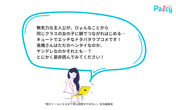 『俺がドールになるまで君は調教をやめない』がは少女・女性マンガアプリPalcyにて連載され、毎週金曜日に更新予定。