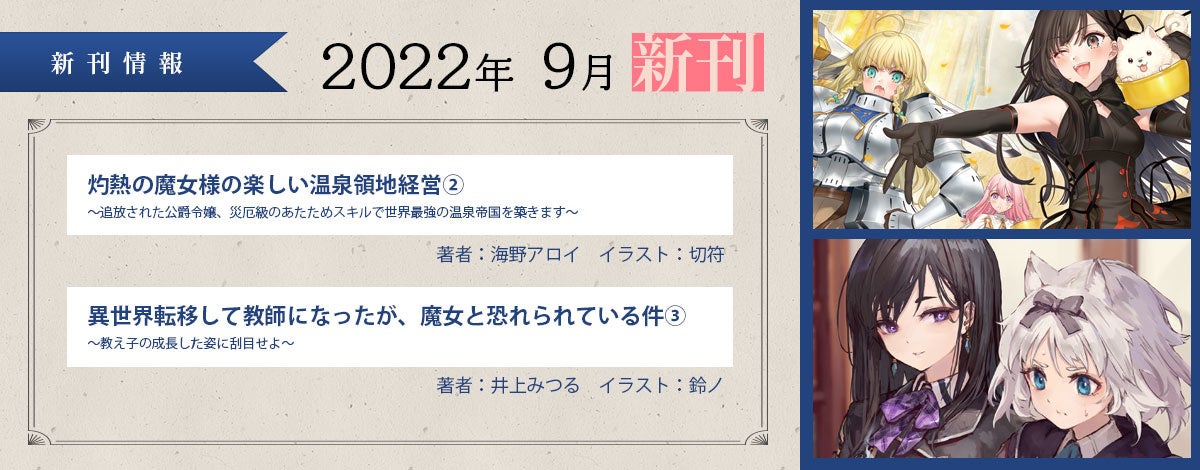 9月1日(木)アース・スター ルナより人気シリーズ『灼熱の魔女様』&『異世界転移教師』発売!