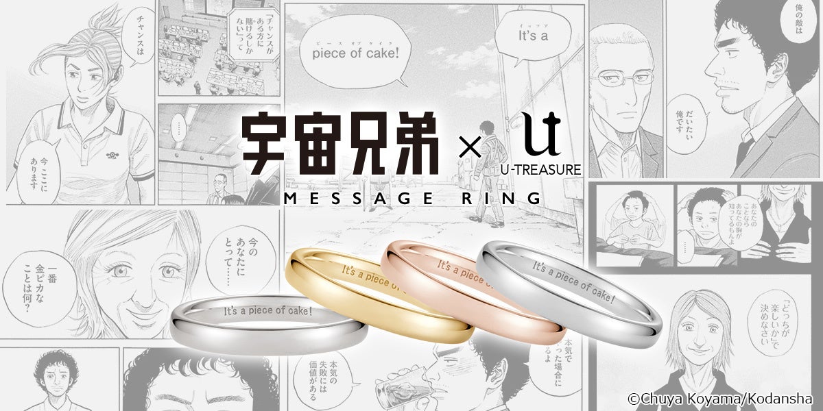『宇宙兄弟』の作中に登場する印象的なメッセージを内側に刻んだリング。あなたや、あなたの大切な人の前に壁が立ちはだかったとき、選択を迫られたとき、プレッシャーと闘わなければならないとき…刻まれたメッセージが、ポンと背中を押してくれるかもしれません。日常使いしやすいシンプルで洗練されたデザインのリングは、包み込むようなフィット感を生み出す内甲丸仕様を施しています。