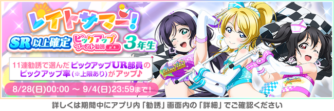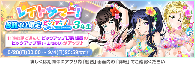 株式会社ブシロード(本社:東京都中野区、代表取締役社長:木谷高明)は、KLab株式会社(本社:東京都港区、代表取締役社長:森田英克)と共同開発いたしましたスマートフォン向けアプリ『ラブライブ!スクールアイドルフェスティバル』(以下、スクフェス) において2022レイトサマーキャンペーン第3弾の開催をお知らせいたします。