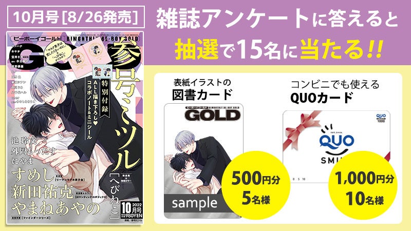 アンケートに答えると下記豪華賞品が当たるビーボーイゴールド愛読者プレゼント実施中!