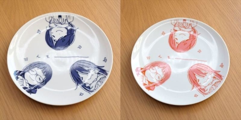原作 第7話 『温泉とボッチと山ごはん』でおんたま揚げを食べて至福の表情のなでしこ達3人をデザインプレートにしました。お好きなものをのせてで3人と至福の時を過ごして下さい。
