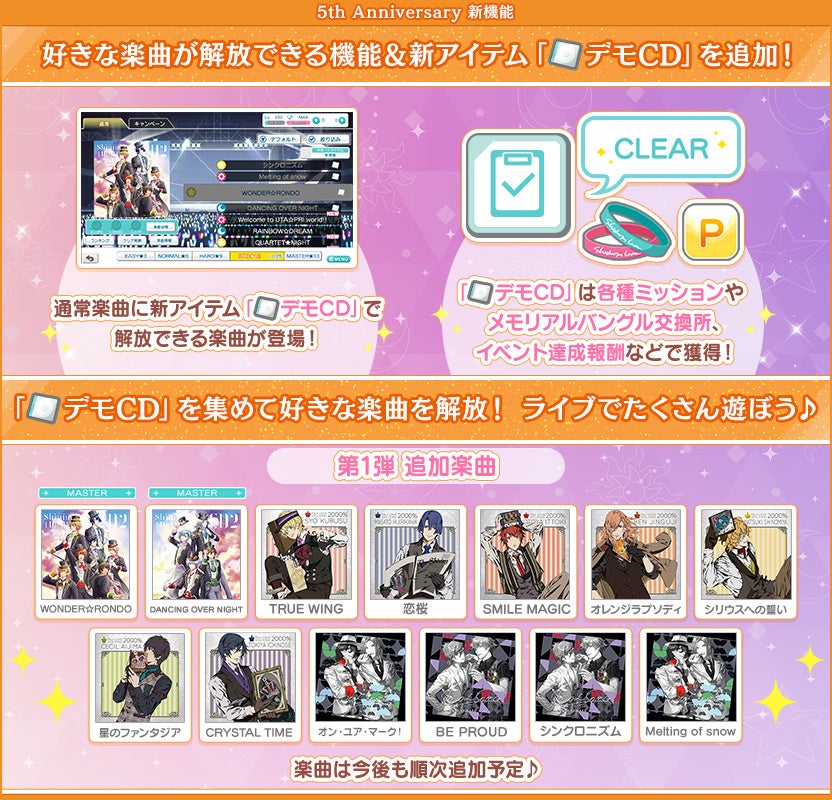 5th Anniversaryを記念して、新テーマソング3曲をスペシャル楽曲に追加します!