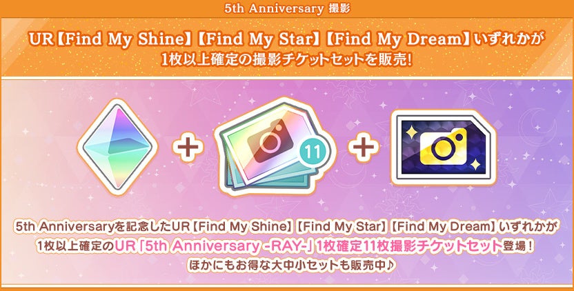 特別にUR【Find My Shine】【Find My Star】【Find My Dream】いずれかが1枚以上確定の11枚撮影をすることができます。