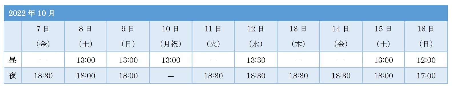 ◆公演日程: 2022年10月7日(金)〜16日(日)