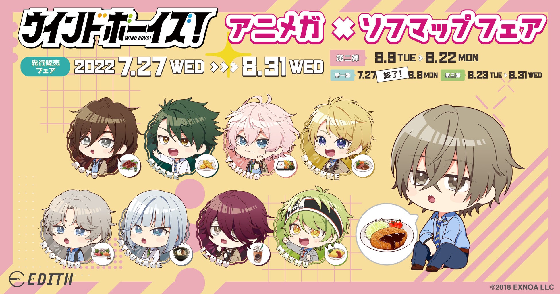 IPを活用したイベント事業・グッズ事業を手掛ける株式会社イーディス(本社:東京都豊島区、代表取締役:森俊平、以下イーディス)は、『ウインドボーイズ!』の描き起こしイラスト「ほしがりさん」を使用した商品を第一弾から第三弾に分けて、アニメガ×ソフマップにて先行販売致します。