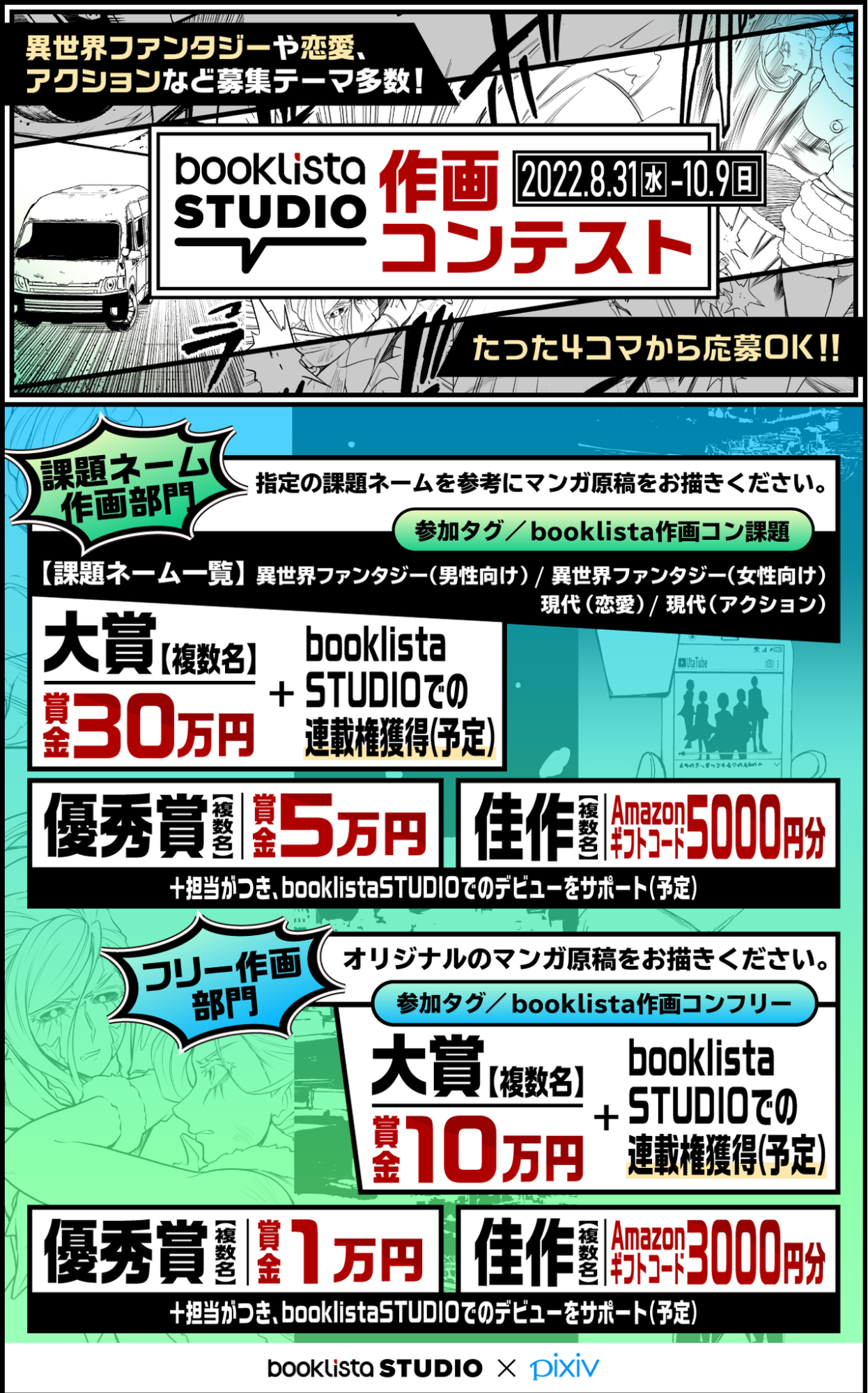 受賞者は作画担当者としてbooklistaSTUDIOからのデビューをサポートさせていただきます。