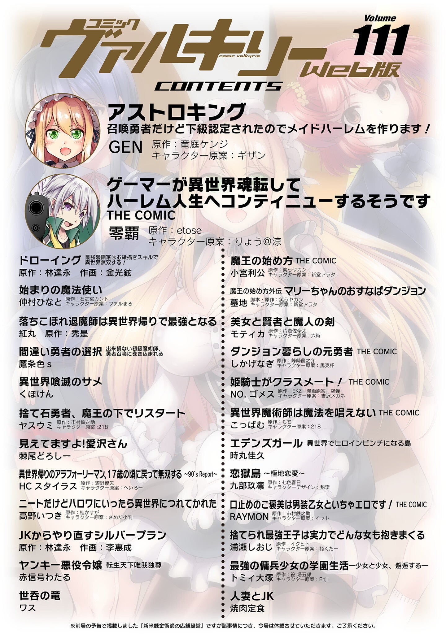 ・巻頭はコミックスも増刷絶好調!『アストロキング 召喚勇者だけど下級認定されたのでメイドハーレムを作ります!』