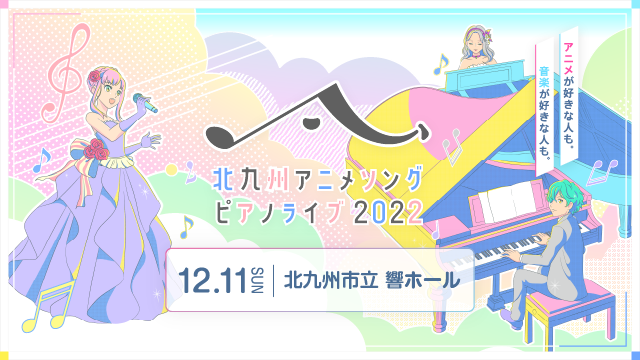 合同会社DMM.com(本社:東京都港区、会長 兼 CEO:亀山敬司、以下「DMM」 )は、地方創生事業(DMM 地方創生)において、福岡県 北九州市(市長:北橋健治、以下「北九州市」)が主催する「北九州アニメソングピアノライブ2022企画運営業務」の事業者として選定され、本イベントを2022年12月11日(日)に開催することをお知らせいたします。また、2022年9月5日(月)より、チケット販売を開始いたします。
